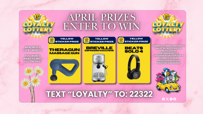 Participate in the exclusive Loyalty Lottery at Prestige Car Wash & Gas. Unlock additional entries by applying the YELLOW PRESTIGE STICKER to the back of your car! Experience the joy of a clean drive and seize your chance to win big. Sign up today and keep winning big each month!